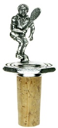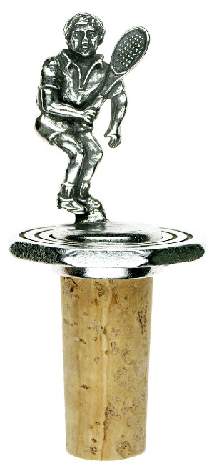 19-02-127- Flaschenverschluss Achteck Tennisspieler antik, H: 9,0 cm - Kühn Zinn 93% (ohne Bleizusatz!)