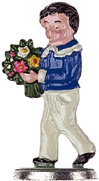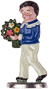 13-10-182C Zinnfigur Junge mit Blumen zum Stellen, H: 4,0 cm - Kühn Zinn 93% (ohne Bleizusatz!)